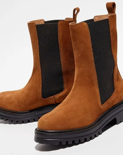 Chelsea Boots en Velours de Cuir Lauriane caramel