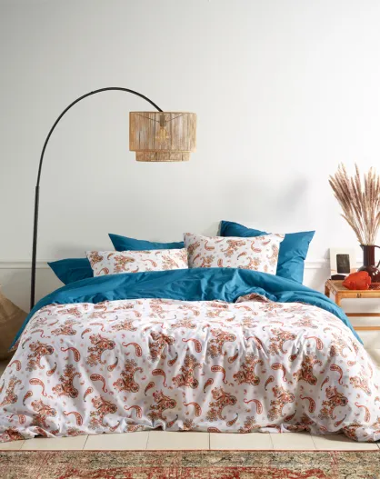 Parure housse de couette 100% Percale de Coton Sybil maroccan blue