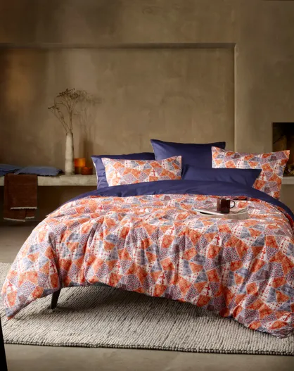 Parure housse de couette 100% Satin de Coton Quilt blue ribbon