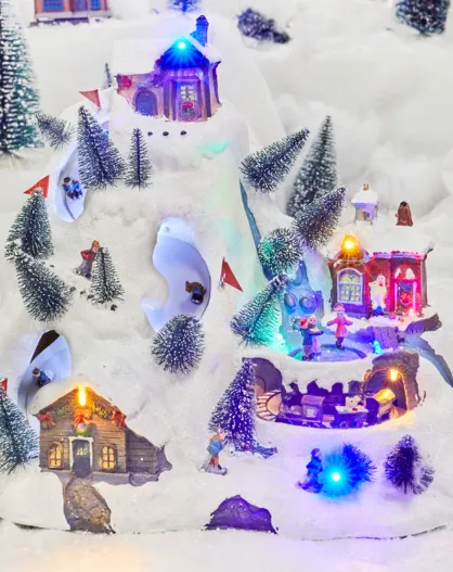 Montagne LED musicale avec piste de ski multicolore - 29x20.5x28 cm