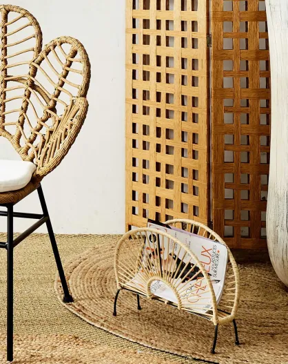 Range-magazine effet rotin beige/noir - 36x29x17.5 cm