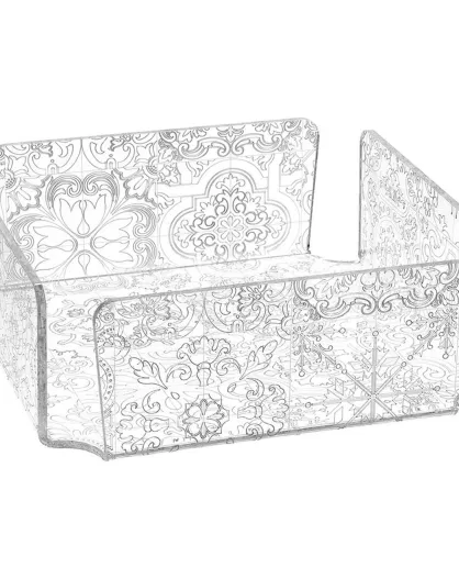 Porte-serviette horizontal Carreaux de ciment transparent/blanc - 22x22x7.5 cm