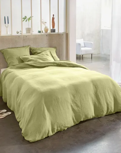 Parure housse de couette 100% Lin lavé Beurre jaune
