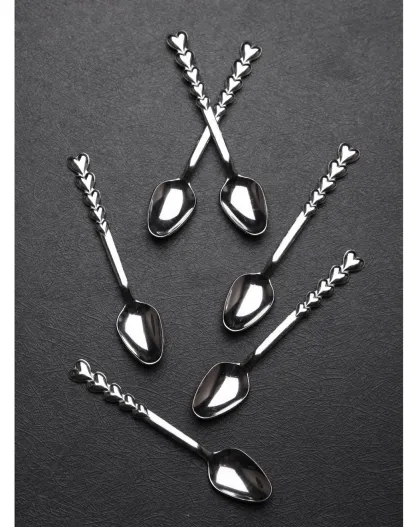 6 Petites cuillères coeur multicolore - 11 cm