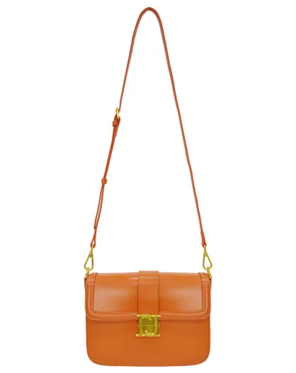 Sac à bandoulière en Cuir Bella orange - 26x19x8 cm