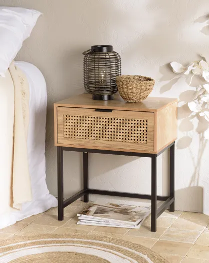 Chevet 1 tiroir rotin Marceau - 48x34x55 cm