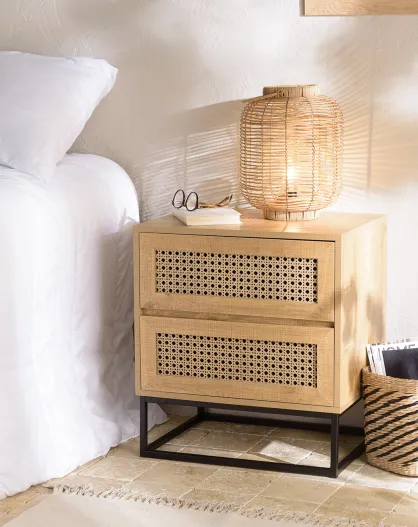 Chevet 2 tiroirs rotin - 52x39x56 cm