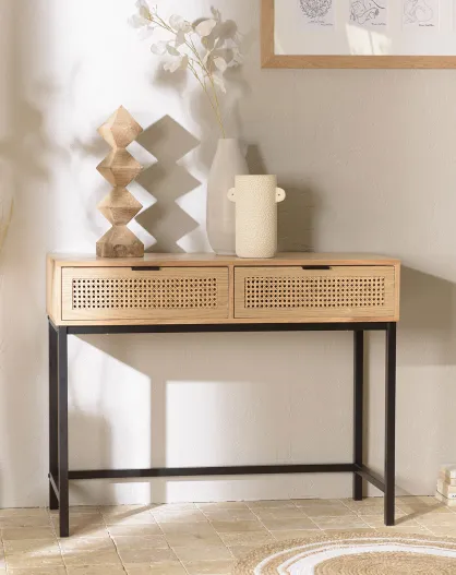 Console 2 tiroirs rotin Marceau - 100x40x79 cm