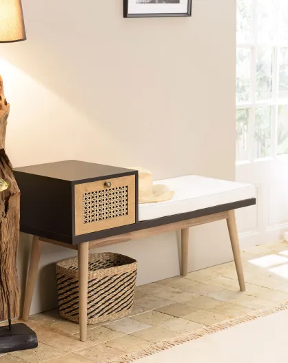 Banc 1 tiroir rotin marron/noir - 110x40x64 cm
