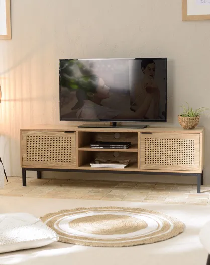 Meuble TV 2 portes rotin Marceau - 147x40x47 cm