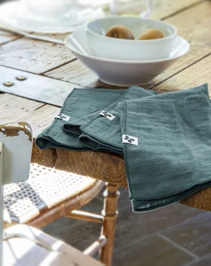 3 Serviettes de table Gaze de coton Gaïa bleues