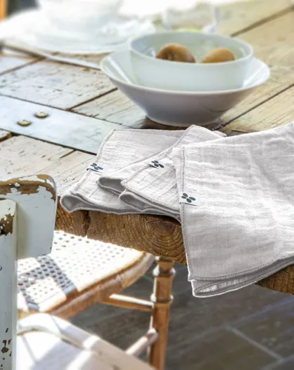 3 Serviettes de table Gaze de coton Gaïa anthracite