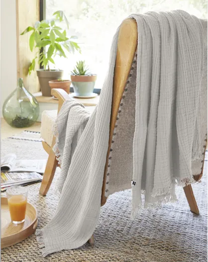 Plaid à franges Gaze de coton Gaïa gris