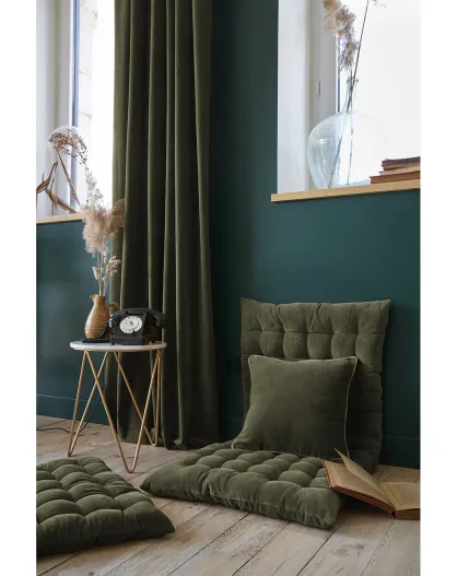Rideau ajustable + 8 anneaux pince Velours de coton César kaki