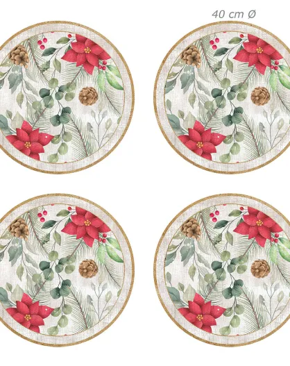 4 Sets de table Poinsettias circulaires - D.40 cm