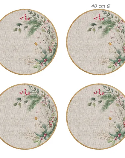 4 Sets de table Bouquet de Noël circulaires - D.40 cm