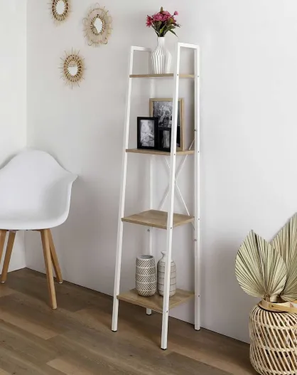 Étagère scandinave bois/blanc - 34x148x32.5 cm