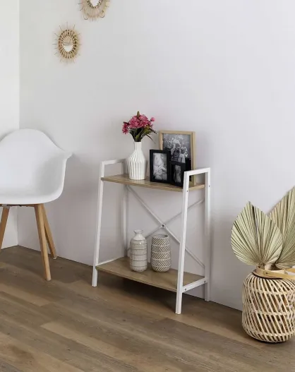 Étagère scandinave bois/blanc - 60x70x27 cm