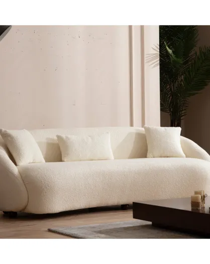 Canapé 3 places bouclette Napoli crème - 230x94x75 cm