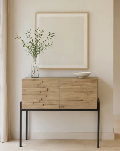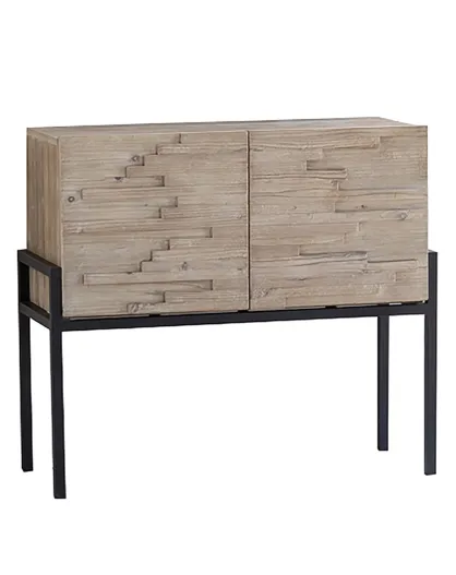 Buffet 2 portes en pin recyclé Kristen beige - 95x40x85 cm
