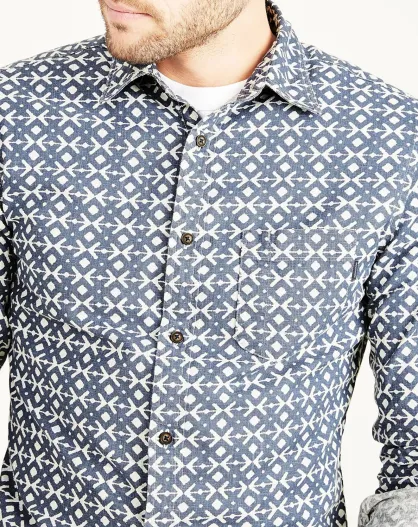 Chemise en Coton & Lin Alpha Icon Slim Fit imprimée bleu moyen