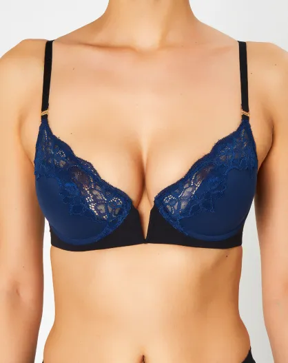 Soutien-gorge Push-Up en Soie mélangée Fleur de Nuit bleu marine/noir