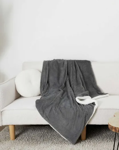 Plaid imitation fourrure sherpa gris - 140x200 cm