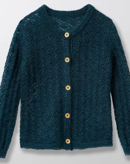 Cardigan en Laine & Mohair mélangés ajouré vert foncé