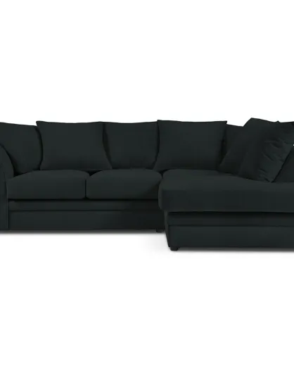 Canapé d'angle Droit Quince Velours côtelé 4 Places noir - 221x171x80 cm