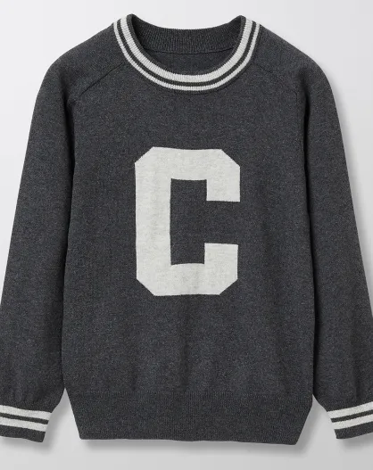 Pull en Coton & Cachemire Intarsia gris moyen chiné