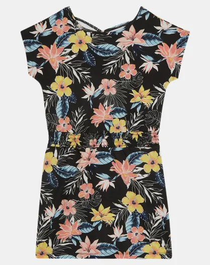 Robe en Coton imprimée fleurs et feuilles noir/multicolore