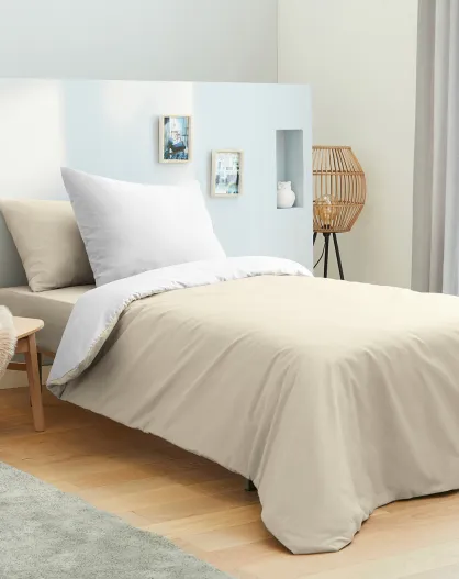 Parure housse de couette , drap housse & taies lin/blanc - pour lit 90x190 cm