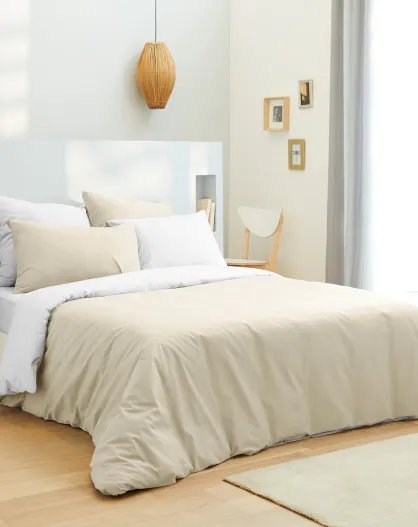 Parure housse de couette, drap housse & taies lin/blanc - pour lit 140x190 cm