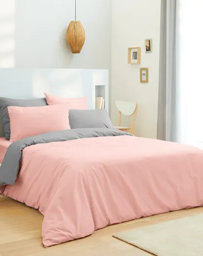 Parure housse de couette, drap housse & taies rose/gris - pour lit 160x200 cm