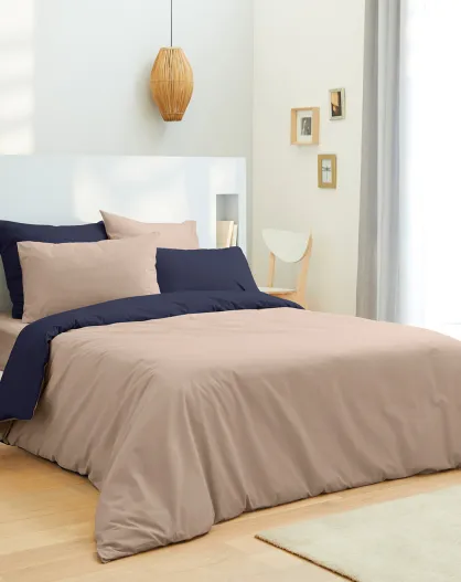 Parure housse de couette, drap housse & taies lin/marine - pour lit 180x200 cm