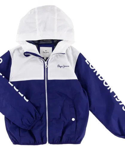 Coupe-vent Mathew à capuche bicolore bleu/blanc