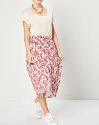 Jupe midi fluide imprimée rouge/blanc