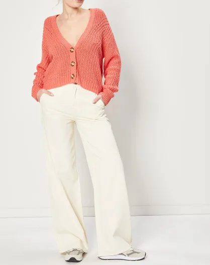 Gilet en Maille mélangée à boutons contrastants rose saumon
