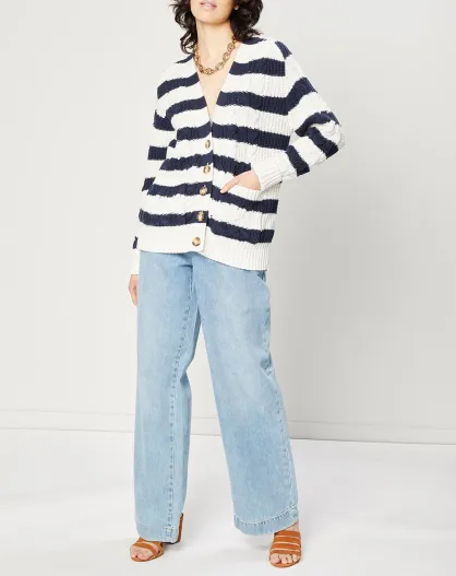 Jean Wide en Coton & Lin mélangés à taille haute bleu clair