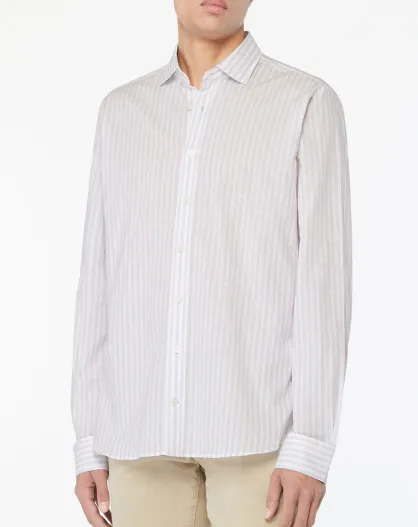 Chemise en Lin mélangé Regular Fit à rayures bleu clair/rose