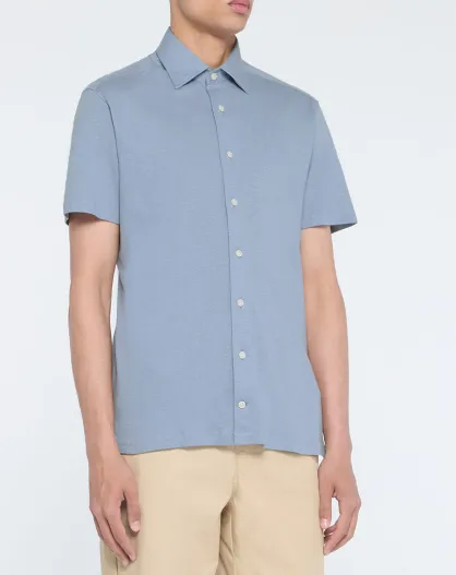 Chemise en Lin mélangé Slim Fit Polo Piqué bleu clair