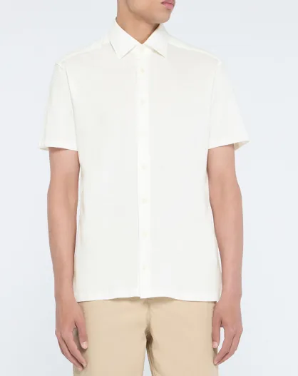 Chemise en Lin mélangé Slim Fit Polo Piqué écrue