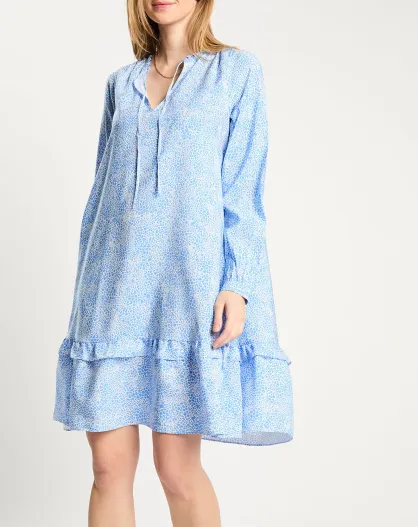 Robe courte à volants bleu/blanc