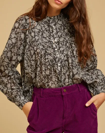 Blouse ample Alba en Voile de Coton imprimée noire