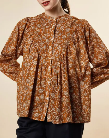 Blouse ample Alba en Voile de Coton imprimée ocre