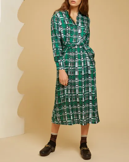 Robe satinée Mina imprimée verte