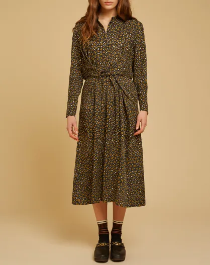 Robe mi-longue Mina imprimée marron/noir