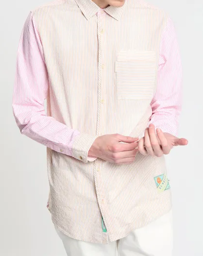 Chemise 100% Coton Bio Regular Fit Seersuck à rayures rose/beige