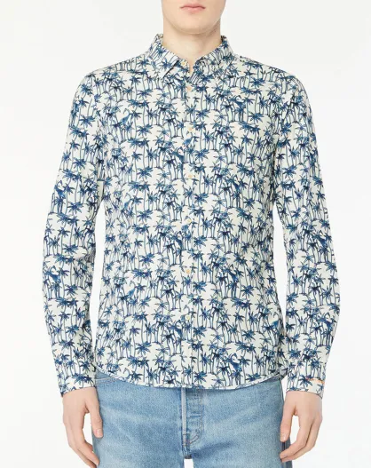 Chemise Slim Fit à imprimé palmiers blanc/bleu
