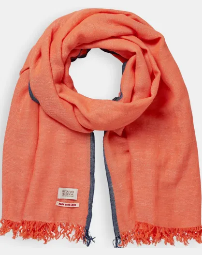 Chèche en Coton Bio & Lin orange clair - 172x80 cm